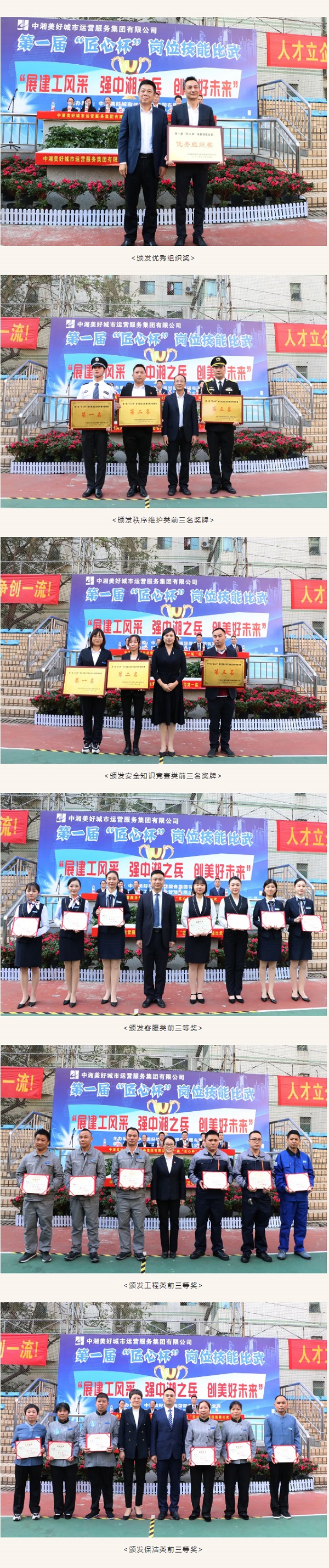 经过1天时间、五大赛场的激烈角逐,本届“匠心杯”技能比武竞赛的结果已经尘埃落定。闭幕式上,李立宣读表彰决定,其中,兴发物业荣获“优秀组织奖”,曾可欣等7位选手荣获客服类竞赛前三等奖,彭正显等6位选手荣获工程类前三等奖,梁桃红等6位选手荣获保洁类前三等奖,兴发物业参赛2队等3个参赛队伍荣获安全知识抢答赛前三名,兴发物业等3个单位荣获秩序维护类前三名。集团领导为获奖集体和个人一一颁奖。