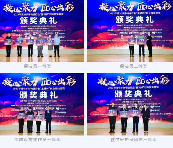 经过三轮紧张激烈角逐,公司选手陈小飞和贺丽分别获得保洁员一等奖和二等奖,胡小英获得消防设施操作员三等奖,秩序维护员参赛队获得秩序维护员团体三等奖,尽展中湘美好技能人才风采。