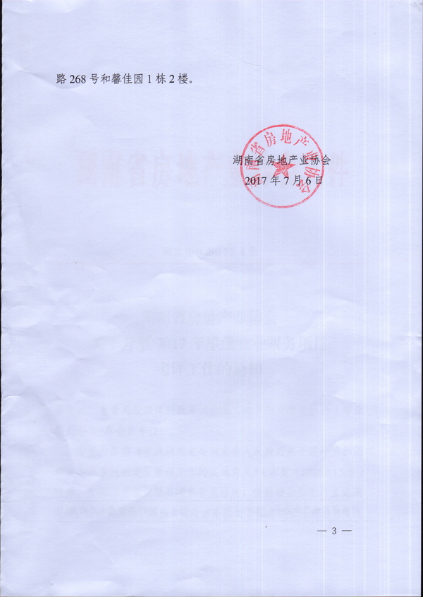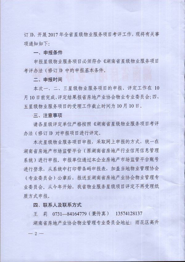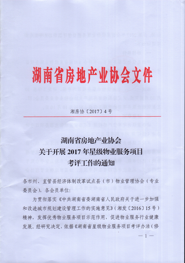 湖南省房地产业协会关于开展2017年星级物业服务项目考评工作的通知