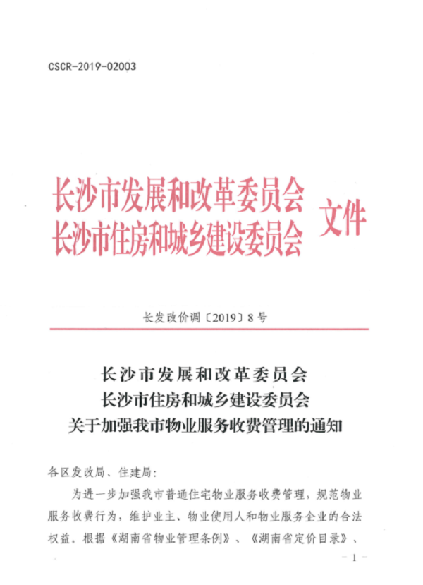 长沙市发展和改革委员会 长沙市住房和城乡建设委员会关于加强我市物业服务收费管理的通知