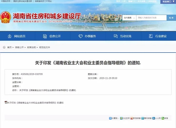 近日,湖南省住房和城乡建设厅印发了《湖南省业主大会和业主委员会指导细则》(以下简称细则),细则自2020年1月1日施行,有效期至2024年12月31日止。