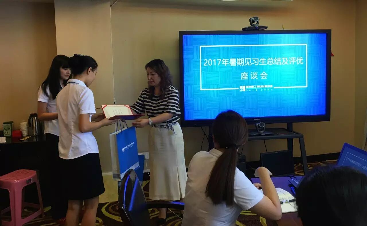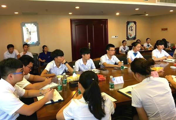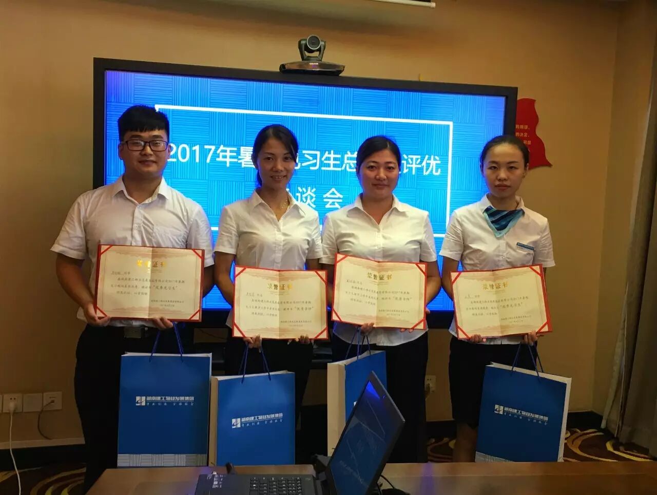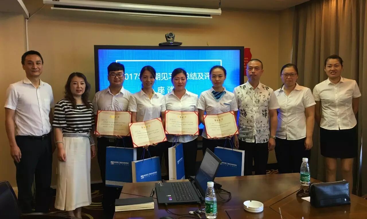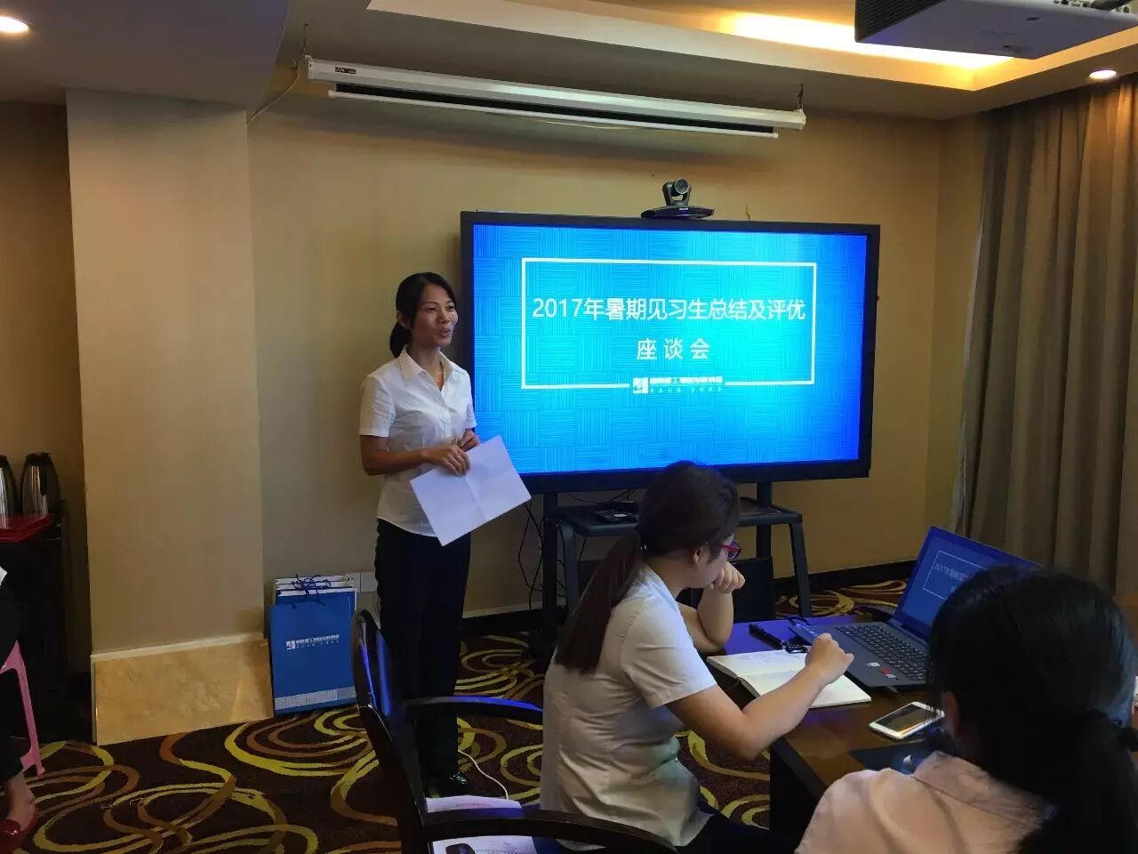 8月23日,集团2017年暑期见习生总结暨评优座谈会在办公楼五楼会议室召开,会议由集团人力资源管理中心经理王莹主持,集团党委书记潘华、兴发物业总经理林松、湖南城建职业学院物业管理专业学科带头人罗少卿出席会议。