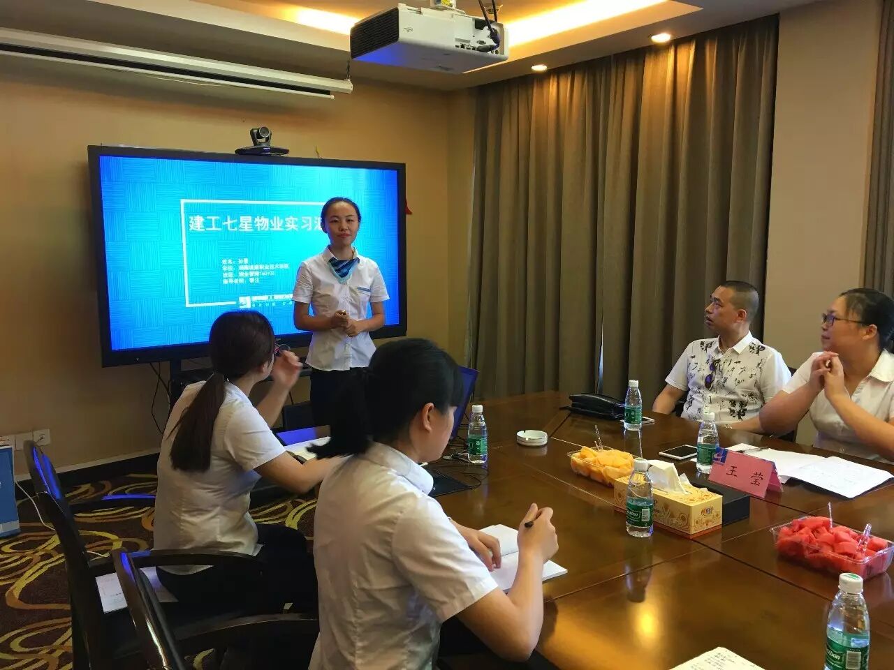 会上,学生代表孙景、李邵隆进行学习成果展示。孙景见习期间在七星物业负责会务接待工作,包括日常工作、会务、客服、巡查、文档整理等;李邵隆在兴发物业和馨佳园负责办公室、工程、保安、保洁、绿化管理等工作。他们都认为见习时间虽然短暂,但理论结合实际,学到了很多课堂上学不到的新知识,以及一些做人做事的道理,对待工作必须认真负责,尽善尽美。