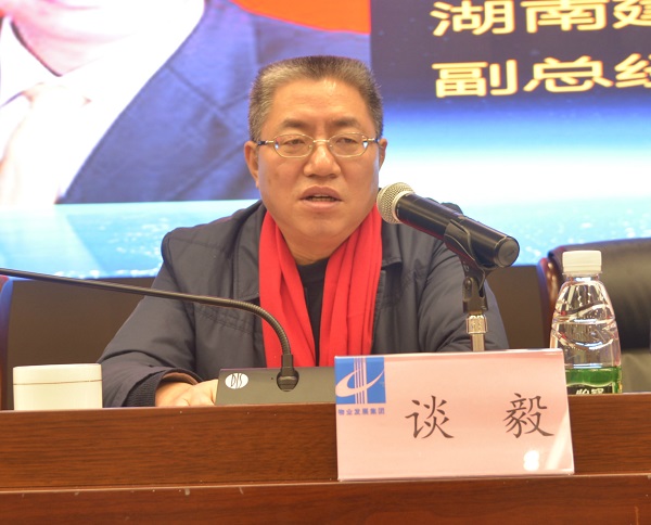 建工集团副总经理谈毅发表讲话,他对物发集团2017年作出的成绩给予了高度的肯定和赞扬,认为集团2017年工作可圈可点,2017年荣誉、品牌声誉可喜可贺,2017年模范、榜样辈出可敬可爱,并代表建工集团表示感谢,也表示祝贺。并对2018年工作提出了具体要求:一是党建工作做强。二是业务领域做宽。三是服务工作做精。四是品牌信誉做响。谈总最后对集团2018年的发展提出了三个期望:一是紧盯行业发展的方向。二是树立敢为人先的信心。三是坚持规范上市的目标。