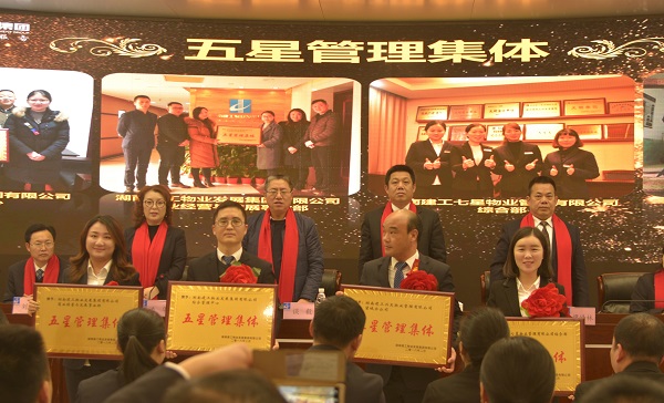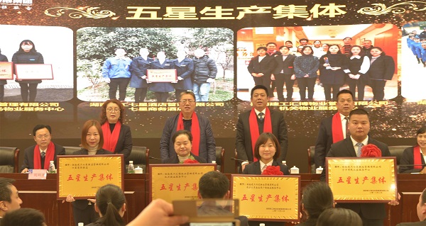 会上,对集团2017年先进单位和个人进行了表彰,潘华书记宣读《关于表彰集团2017年度先进单位与先进个人的决定》,并表示,2017年,集团积极应对复杂多变的宏观经济形势,紧跟时代节奏,创新转型升级,强化基础管控,加快改革发展,较好地完成了各项目标任务,推动集团平稳健康发展,同时涌现了一大批先进典型。为弘扬先进典型,树立标杆示范,集团决定授予湖南建工七星物业管理有限公司“先进单位”荣誉称号;授予湖南建工兴发物业管理有限公司望城分公司等4家单位“五星管理集体”荣誉称号;授予湖南建工汇博物业管理有限公司机关物业服务中心等4家单位“五星生产集体”荣誉称号。授予严秀华等5位同志“劳动模范”荣誉称号;授予王先智等10位同志“精英管理者”荣誉称号;授予李曾等10位同志“匠心生产者”荣誉称号;授予宋志高等10位同志“最具执行力”荣誉称号;授予严施怡等7位同志“新锐之星”荣誉称号;给予万志强同志、湖南建工兴发物业管理有限公司和馨佳园(一期)物业服务中心“总经理特别嘉奖”。希望受表彰的先进集体和先进个人珍惜荣誉、再接再厉、争创佳绩。希望广大职工以先进为榜样,提振信心、锐意进取、开拓创新、精作奉献,为谱写集团科学发展新篇章做出更大的贡献!建工集团谈毅副总经理、集团领导班子为获奖集体和个人一一进行颁奖。