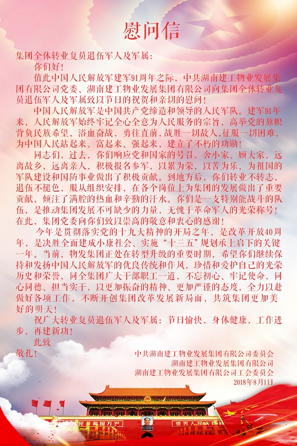庆祝建军91周年——致集团全体军人及军属的一封慰问信