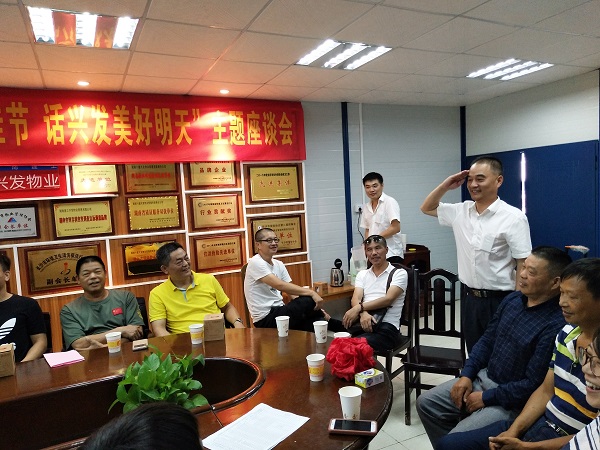8月1日上午,兴发物业党委在公司三楼会议室召开了一场别开生面的退伍军人座谈会。来自各个基层单位的近30位退伍军人及军嫂参加了会议,会议由工会主席周敏文主持。