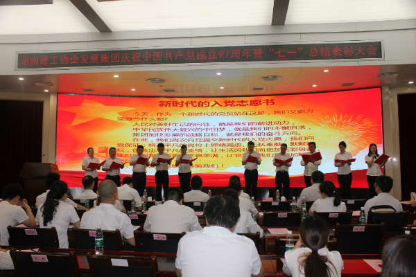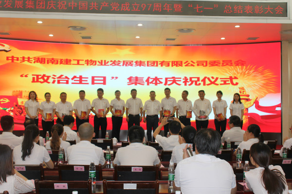 7月3日上午,集团在建工集团三楼会议室隆重召开庆祝中国共产党成立97周年暨“七一”总结表彰大会,会议回顾了建党97年来的光辉历程,总结了集团2017-2018年度党委工作,表彰了集团2017年-2018年度党内先进集体和个人,并为7月入党的老党员举行了“政治生日”集体庆祝仪式。10位老党员集体朗诵《新时代的入党志愿书》,集团领导为老党员们赠送了“政治生日”寄语和贺卡。