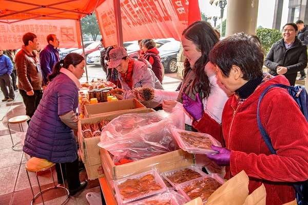 另一边的农产品展销活动也进行得如火如荼,“我们的绥宁花猪在全国都是有名气的,当地村民喂养了两年多才出栏,是绿色无污染、无抗生素的良心猪肉”,绥宁县雀林国学村村长黄始坚对这次销售的农副产品如数家珍。对于社区党总支及七星物业党组织的爱心善举,他表示非常感谢。