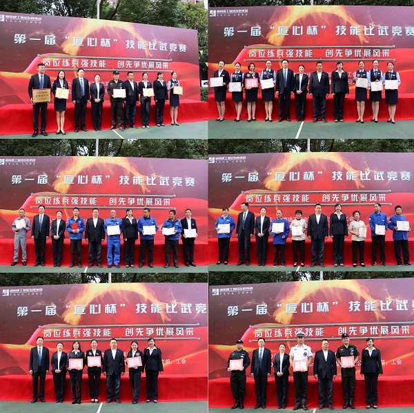 经过各赛场上的激烈PK,本届“匠心杯”技能比武竞赛三项个人赛项目及两大团体赛项目均已尘埃落定。下午三点,闭幕式在篮球场举行。刘双源书记宣读表彰决定,其中,七星物业荣获“优秀组织奖”、《以梦为礼,尽显芳华》等4个节目荣获“最佳风采奖”、蒋京京等7位选手荣获行政客服类竞赛前三等奖、黄军富等6位选手荣获工程类竞赛前三等奖、梁桃红等6位选手荣获保洁类竞赛前三等奖、集团本部队等3个参赛队伍荣获通用类竞赛前三等奖、七星物业一队3个队伍荣获秩序维护类竞赛前三等奖。随后,集团领导为获奖选手一一颁奖。