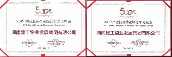 2019年10月15日,由中国物业管理协会主办的2019年国际物业管理产业博览会暨第五届中国物业管理创新发展论坛正式公布《2019物业服务企业发展指数测评报告》,揭晓了“2019 物业服务企业综合实力 500 强”榜单及“各细分业态物业服务领先企业榜”。集团荣登2019物业服务企业综合实力500强榜单第110名,并荣获“2019年产业园区领先企业”荣誉称号,集团下属子公司兴发物业荣登2019物业服务企业综合实力500强榜单第123名。