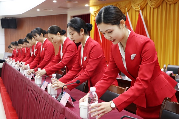 礼仪服务——会务礼仪人员是穿梭忙碌在各主分会场的一抹靓丽“红”,凭借良好的形象气质、饱满的精神状态、专业的服务态度,获得了集团领导、参会代表的一致好评。