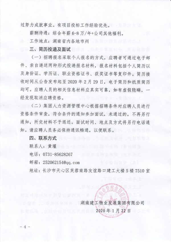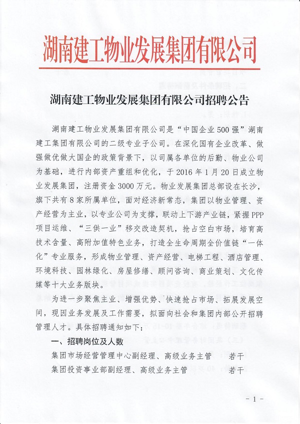 湖南建工物业发展集团有限公司招聘公告