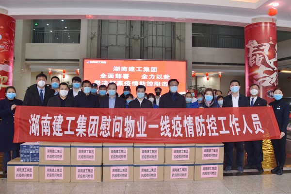 “广大物业工作者连续奋战十多天,十分辛苦,大家履职尽责,付出了很多努力,集团向你们表示诚挚感谢和节日慰问。”2月8日上午,正月十五,正值中国传统元宵佳节,湖南建工集团党委副书记、总经理、疫情防控工作领导小组组长李湘波,建工集团党委委员、副总经理、疫情防控工作领导小组执行组长桂兹军,建工集团党委委员、副总经理贺源一行慰问物发集团七星物业建工新城项目物业工作人员,向他们致以感谢和节日慰问。同时,李湘波总经理还特别叮嘱大家,一定要做好自身防控,保护自己,保重身体。