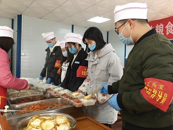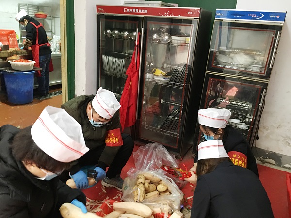 自复工以来,兴发物业六建机关食堂每天需要将四五百份饭菜分餐打包送到业主单位。为了帮助食堂缓解疫情期间工作量剧增的压力,兴发物业团支部提前联系了食堂负责人,带领团员青年佩戴口罩、手套、帽子和疫情防控督导员红袖章,进行体温监测和个人消毒后,进入食堂义务为食堂提供择菜、分餐打包和送餐等志愿服务。