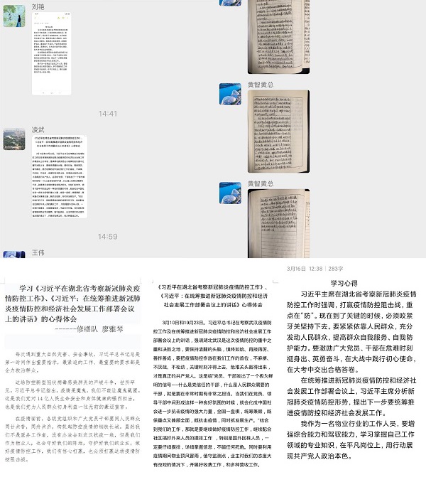 全体党员深入学习了《习近平讲述的故事:雷锋,永恒的精神坐标》、《习近平在湖北省考察新冠肺炎疫情防控工作》、《习近平:在统筹推进新冠肺炎疫情防控和经济社会发展工作部署会议上的讲话》等重要讲话、重要指示精神,以党建为引领推动“线上”“线下”同频共振,确保党员学习不间断。