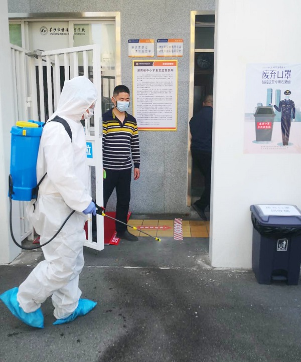 为保证教职工和学生的正常复课,兴发物业长沙市雅礼实验中学物业服务中心从寒假期间就建立健全每日疫情防控台账,从未间断对学校的校门口、门把手、扶梯、卫生间、垃圾箱等各个角落的全方位、无死角消毒和清洁作业,设置了废旧口罩专用回收箱,将废旧口罩统一按照医疗垃圾集中处理,将防疫消毒用具严格分类放置,时刻做好迎接师生返校的准备。