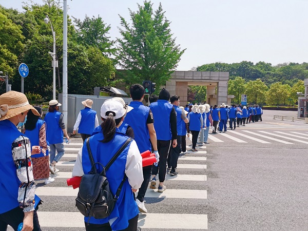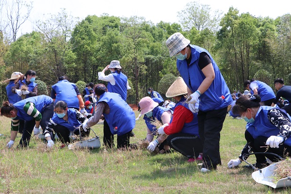 到了下午两三点,气温升到最高值,高达30℃。连续数小时的体力劳动过后,有些志愿者已经明显体力不支,且天气炎热有中暑现象。“大家都在坚持,我也可以!就是汗水滴到眼睛里有点睁不开”,虽然大家一个个的都汗流浃背,大滴的汗珠从脸上淌下,但还是不忘幽默放松一下,现场不时传来欢声笑语。尽管大多数志愿者都是90后青年员工,从未有过长时间户外劳动的经历,但他们都克服困难坚持了下来,充分发挥不怕苦、不怕累的精神。领导干部更是带头抢着干,用自己的率先垂范、身体力行感染和鼓舞了现场的所有人。