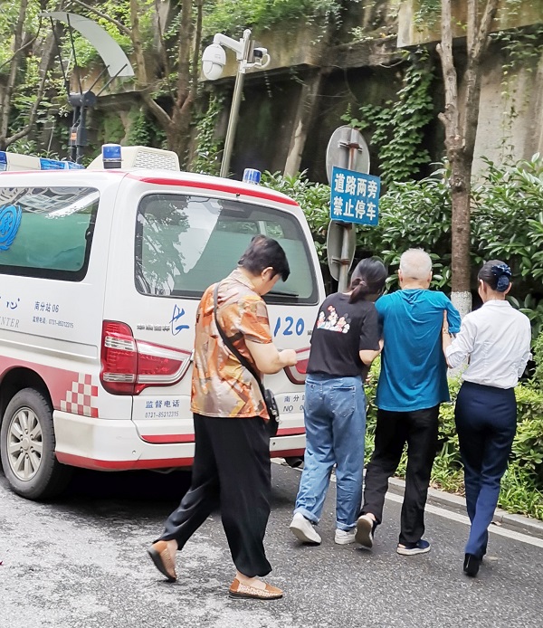 6月8日上午11点11分 ,居住在和馨佳园小区2栋的一位79岁业主在取快递的途中突然晕倒在在地,兴发物业和馨佳园物业服务中心经理严秀华得知消息后立即带领客服人员和工程人员赶到现场,在将业主背回室内的同时拨打了120急救电话。
