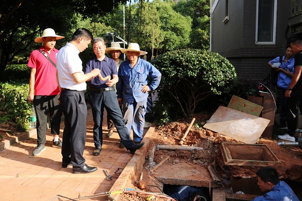 当天晚上23时,七星物业召集协调了业委会、个别业主代表以及直属公司(空调改造施工单位)等负责人到达现场分析研究,决定放弃原管道维修方案,采取安装户外临时明管的方案,来保障目前高温天气下联排南(联排1-4栋)中央空调的正常供应。