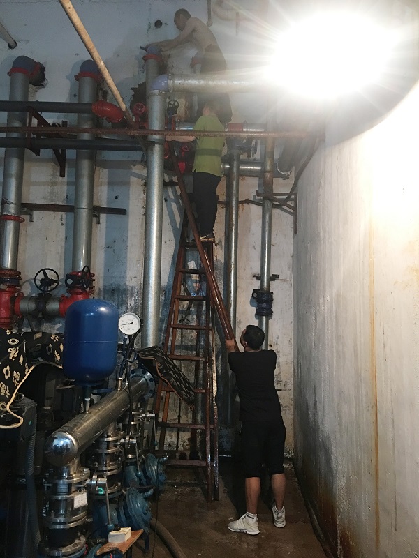 6月16日上午11点半,通泰梅岭苑小区主水管突然爆裂,兴发物业通泰梅岭苑物业服务中心经理曾杰接到通知后,第一时间赶到现场勘察,并带领工程人员前往水泵房查看原因。为尽快解决水管爆裂给业主带来的诸多不便和减少因大量漏水带来的经济损失,服务中心迅速启动应急预案,组织工程人员开展抢修工作。