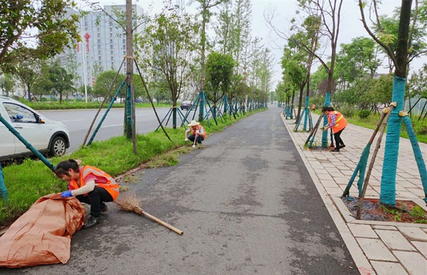 三是对人行道边的杂草进行地毯式清理。安排20名环卫工人对望城大道、雷锋大道、旺旺东路等重要路段进行药物喷洒除草,对人员密集区域进行人工除草,共使用除草药剂200余瓶,清理出杂草两大车,同时安排专人定期清洗和维护服务区域内的环卫设施设备。