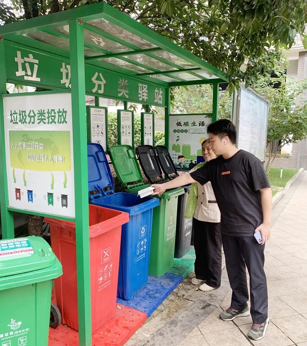 建工新城垃圾分类项目组建了专业的宣导队伍,健全宣教培训体系,以点带面,通过海报宣传、物业宣传、上门讲解、桶边督导等手段,帮助广大居民及职员“知分类,会分类、主动参与分类”。截止目前,环境公司对桶边督导员、物业管理人员、保洁人员进行相关知识考核,考核达标率达到90%以上。培训入户宣教工作已达300户左右,小区确定的智能分类桶摆放点共9个,土建项目已完成80%,7月底将完成设施美化及智能分类设备安放。