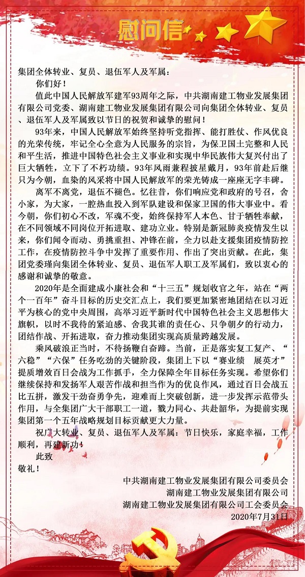 建军节 | 致集团转业、复员、退伍军人的慰问信