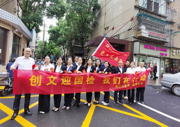 在全国文明城市创建迎检测评之际,为深入推动创文迎检工作有序开展,营造全民参与共建的浓厚氛围,9月22日,兴发物业第一党支部结合百日会战中党建生产相融互促工作要求,开展了“创文迎国检,我们在行动”主题党员突击活动,组织党员前往公司服务的区域开展创卫迎检环境卫生大扫除、宣传垃圾分类和引导业主更好的遵守小区封闭式管理等志愿服务活动。