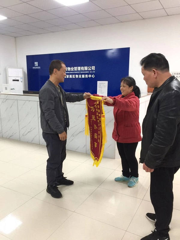 近日,兴发物业江麓机电集团职工家属区物业服务中心迎来了一位特别的客人。和平村十栋一楼刘雪英老人在社区主任的带领下,来到物业服务中心并送上一面写着“为民办实事”的锦旗,感谢兴发物业工作人员不怕脏、不怕累,连夜奋战为老人解决家中积水问题,尽心尽力尽责为业主服务。