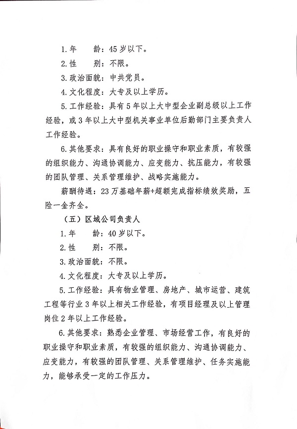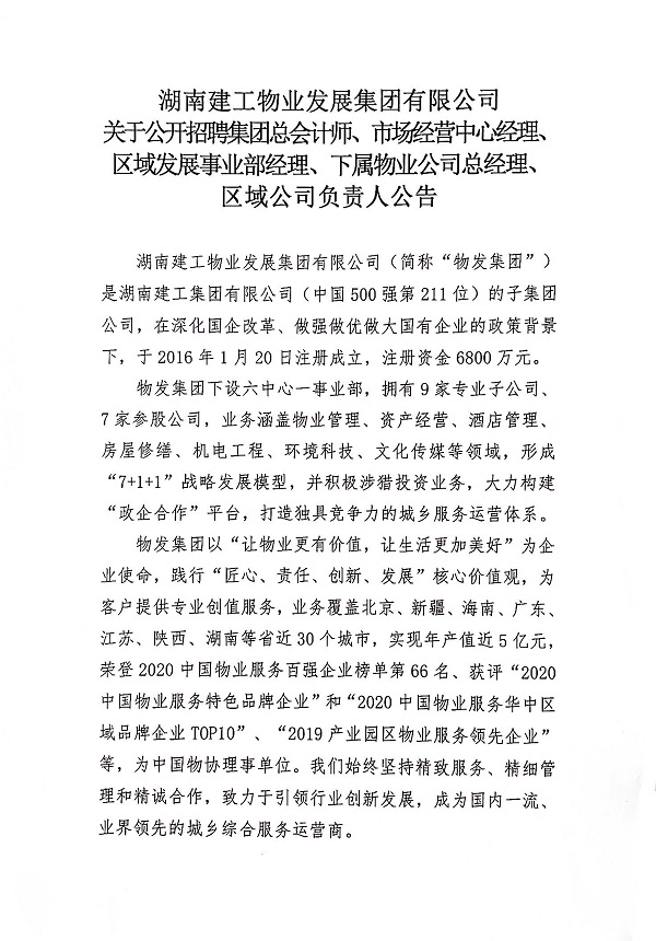 关于公开招聘集团总会计师、市场经营中心经理、区域发展事业部经理、下属物业公司总经理、区域公司负责人的公告