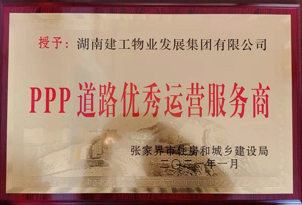 2021年1月12日,集团喜获张家界市住房和城乡建设局授予的“PPP道路优秀运营服务商”荣誉称号,这一荣誉的获得充分肯定了集团武陵山大道PPP项目运营管理实力和工作成绩。