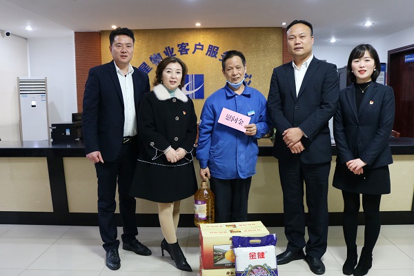 2月3日下午,大雨阻挡不了牵挂,集团工会主席、副总经理欧艳梅一行冒雨来到兴发物业车站路项目走访慰问保安员李文武、保洁员张月兴两位同志,仔细察看他们的工作环境,细致了解他们的工作、生活情况,认真倾听他们的实际需求,并为他们送去慰问金和慰问品。