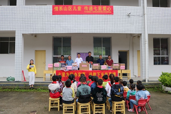 用书传递爱心,用知识丰富眼界。在第71个“六一”国际儿童节到来之际,七星物业党支部志愿者团队为兰家村的孩子们送来一批儿童书包、彩笔及200本爱心课外读物,丰富孩子们的童年梦想。拿着心仪的礼物,孩子们的脸上洋溢着灿烂的笑容。随后,孩子们为志愿者系上红领巾,并用舞蹈“感恩的心”、“外婆的澎湾桥”表达感恩之情。