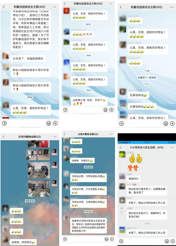 兴发物业广大驻守在防疫一线的员工每天24小时值守在服务区域,开展的防疫物资采购、防疫宣传、无死角消杀工作、出入口体温检测、两码查验,以及送菜送快递等贴心服务,给业主们带来了稳稳的安全感。业主们看在眼中,记在心里,将这份感动表现在了行动上,在业主群里接龙点赞,称赞物业尽职尽责的服务和无微不至的关护。