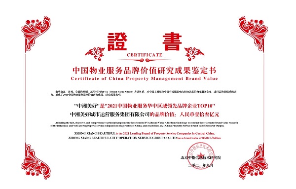 大会发布中国房地产品牌价值最新研究成果,充分展示优秀企业的品牌发展成果和企业风貌。中湘美好集团凭借综合实力强、发展态势稳、成长潜力大荣膺“2021中国物业服务华中区域领先品牌企业”、“2021中国城市服务优秀品牌企业”、“2021值得资本市场关注的物业品牌”三项行业荣誉。