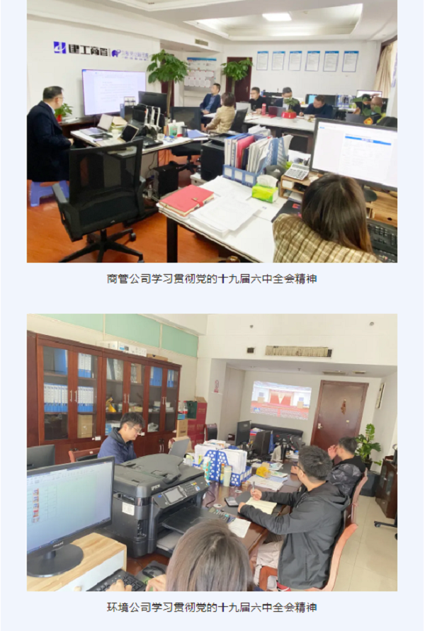 党委中心组示范引领学、专题学习会集中深入学、党员干部自觉拓展学……连日来,集团各级党组织、各单位利用官网官微、专题会议、主题党日活动、宣传栏等线上线下多形式,全面掀起学习宣传贯彻党的十九届六中全会精神热潮,引导全体党员群众把握丰富内涵和核心要义,推动全会精神落地生根、入脑入心、见行见效。