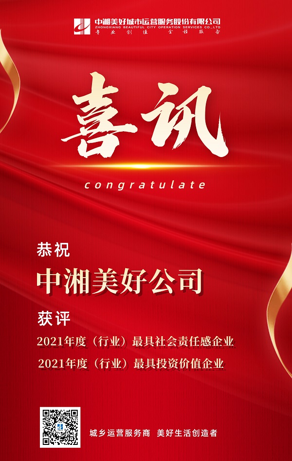 近两年来,中湘美好公司创新推行“政企合作+商企合作”多赢市场拓展模式,持续夯实传统业务、做强专业板块、做精创新领域,积极践行城市基础治理和公共服务的国企力量,大跨步迈进新时代城乡运营服务商行列。此次2项荣誉的获得,高度体现了行业对中湘美好公司高质量发展成果的广泛认可。
