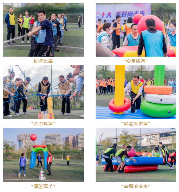 随后的“众星捧月”、“合力筑塔”、“智慧汉诺塔”、“灌篮高手”、“幸福滚滚来”都各具特色,各有亮点。每一个比赛项目都锻炼大家的动手动脑能力,也锻炼大家在工作中能够团结协作的精神,这不但是智慧和体力的角逐还是团结和协作的完美比拼。