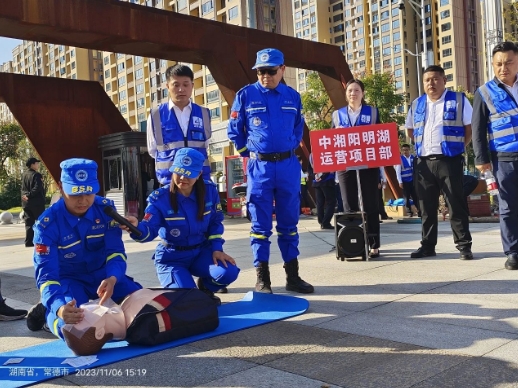 11月6日,常德市阳明湖水系治理工程PPP项目邀请常德市蓝天救援队在阳明湖公园开展应急救援培训。