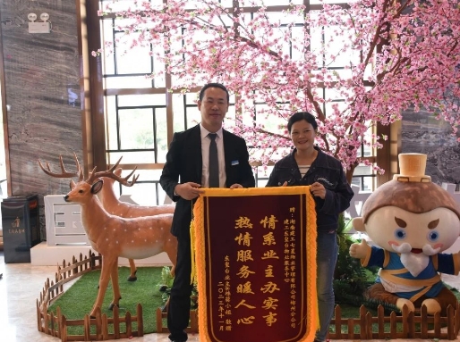 在交付过程中,得知收房的业主是今天生日,项目人员贴心送上生日蛋糕,为寿星业主齐唱生日歌,现场气氛温馨,欢聚一堂。收房当日,已入住的业主在交付现场送来一面珍贵锦旗,表达了对物业服务工作的认可。