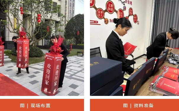 为确保交付工作顺利进行,公司从10月开始组织东玺台物业服务中心工作人员开展岗位培训,通过理论与实操相结合的模式,学习公司文化、规章制度、各条线专业知识及作业标准等,掌握高标准作业规范及流程。11月25、26日,为保障集中交付圆满进行,公司抽调精英骨干人员前往项目支持,一同对小区进行盛装布置、彩排交付流程,全员备战,为交付流程保驾护航。
