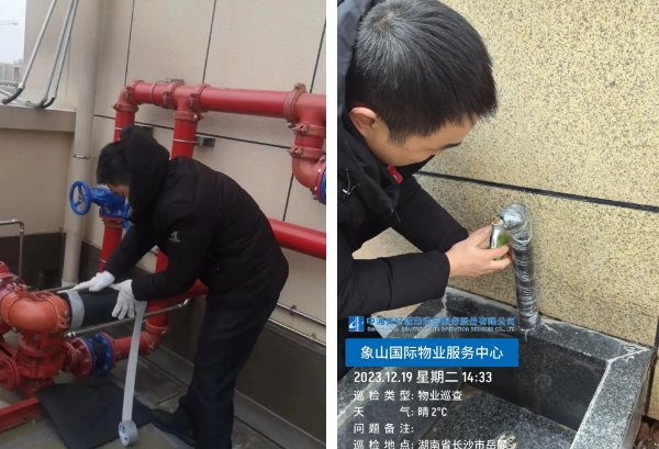 为确保园区设施设备在冬天安全平稳运行,设施设备防寒保暖工作也启动起来。工程师傅们拿着塑料布、防寒毡穿梭于园区的各角落,封堵外排井、设备间百叶窗、屋面排风口,悬挂防寒门帘……工程师傅们让设备设施同样也能“温暖”过冬,为业主们的“暖冬”保驾护航。