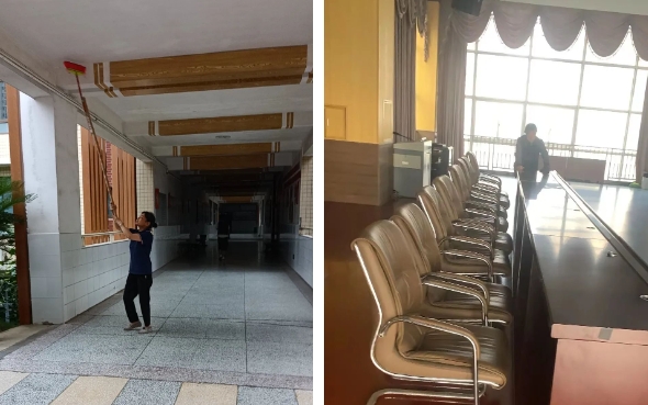 保洁部除了做好各自区域日常保洁工作外,积极配合学校开展开学工作督导、文明创建、垃圾分类、外校参观、校园文化节等各类大小活动百余次,按要求布置活动会场,确保环境干净卫生,保障各项活动圆满举行。疫情及流感期间,每天加班加点对全校进行消杀。说他们是校园勤劳作业的“小蜜蜂”再合适不过。