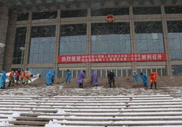大会前一天,暴雪来袭,为消除安全隐患保障会议顺利召开,中湘美好组织党员突击队、青年突击队紧急前往项目支援,针对省政府机关院重点路段、重点区域开展扫雪铲冰活动。大家顶着风雪,理出一条条“安全路”。