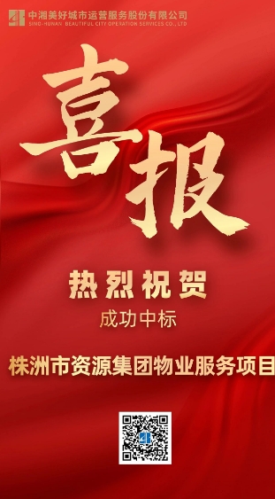 继2022年中标株洲市资源投资集团物业服务项目后,公司凭借优秀的服务口碑再次成功中标。中湘美好将继续为广大业主提供优秀的物业管理服务,始终秉承着“一流、创新、诚正、奉献”的企业精神,让物业更有价值,让生活更加美好。