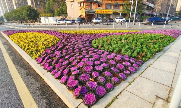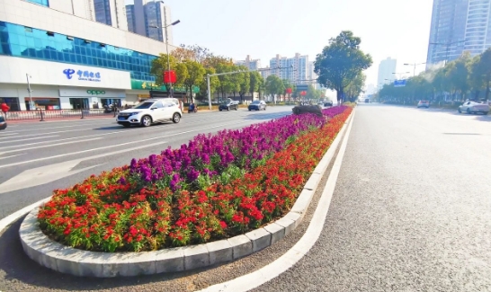 绿化部清理区域内绿化带落叶及杂物,更换以红色基调为主的时令花卉,营造繁花似锦、喜庆祥和的节日氛围。