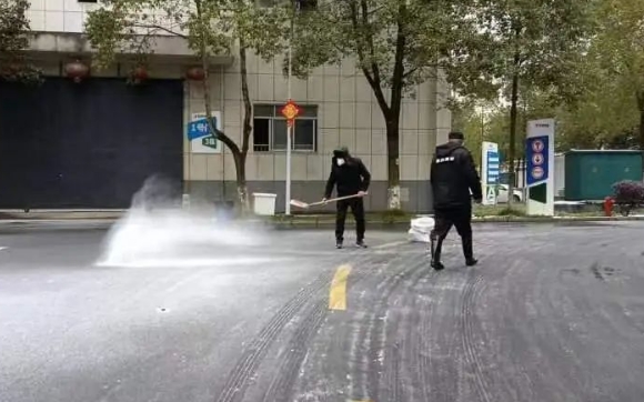 为防止路面结冰,组织各项目提前对园区各主干道及重要路线铺撒工业盐、铺上防滑麻袋,保证园内行人及车辆安全通行。