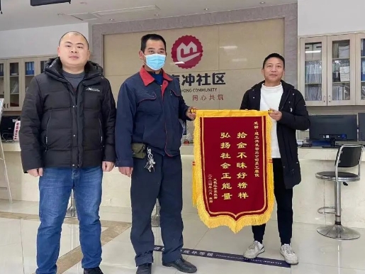 本以为事情就这么过去了。没想到失主心怀感恩,于2月26日再次来到了杨梅冲社区,请社区工作人员联系康俊见面,并送上锦旗表示感谢。