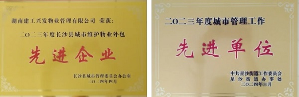 近日,长沙县城市维护三标项目被政府主管部门授予“2023年度长沙县城市维护物业外包先进企业”和“2023年度城市管理工作先进单位”荣誉称号。这是继项目获得湖南省环卫清洁行业协会“优秀项目”后又一份荣誉。